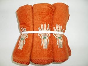 Harvest Melody Wash Cloth (Set of 6) by Cotton Craft - 100% Pure Cotton Velour with colorful embroidered motifs - Choose from - Assorted, Pumpkin-Orange/Green, Wheatgrass-Golden/Orange - Size 12x12 inches - Colorful and warm harvest and fall styles are id: Amazon