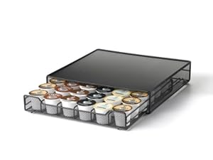 Category: Beverages Vendor: Holds up to 36 k-cups Sliding drawer construction Classy black satin finish Space saving design Dimensions - 13-1/4-inch lenth Product Description